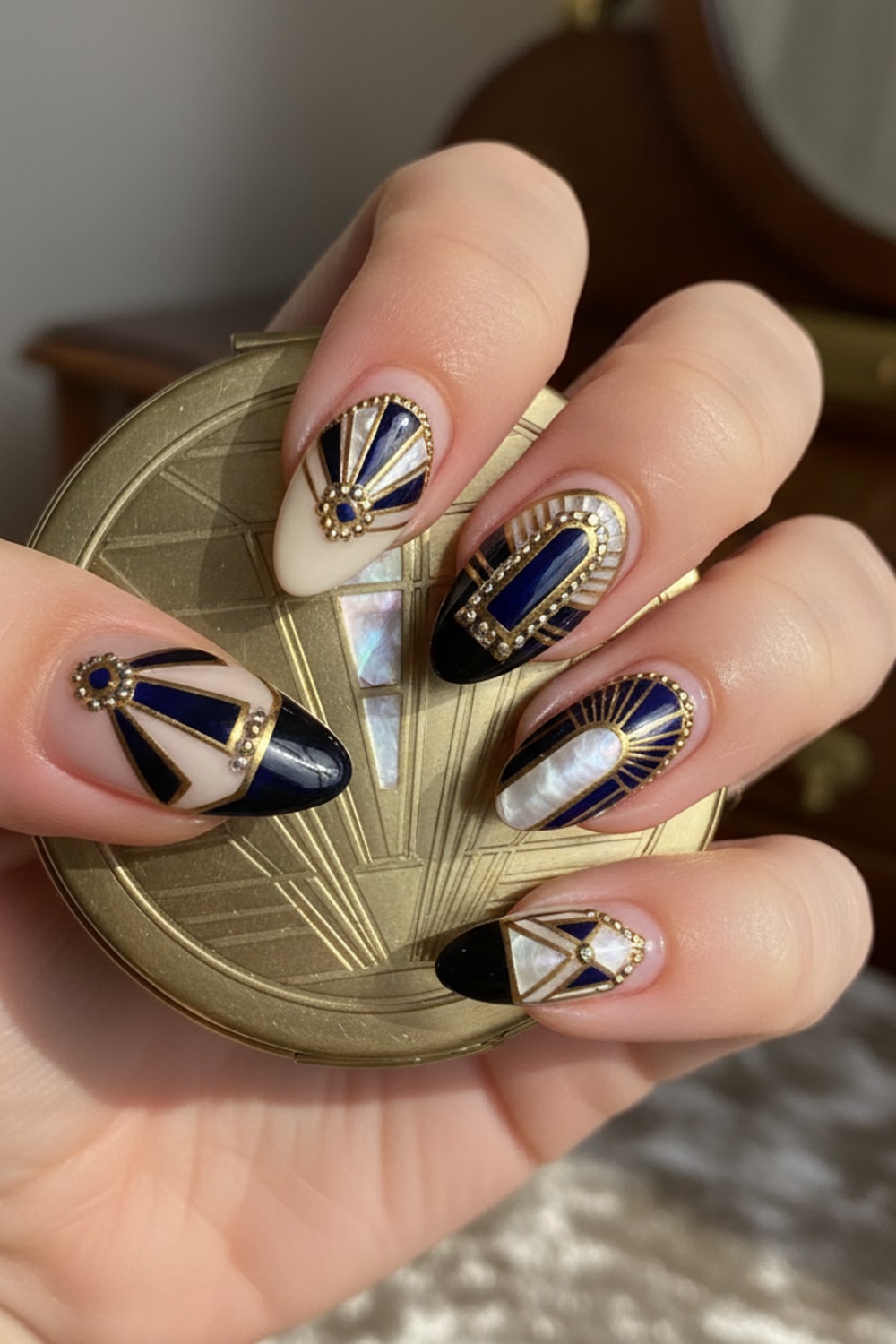 Sophisticated Art Deco Salon Nails: Photo-Real Geometric Glamour