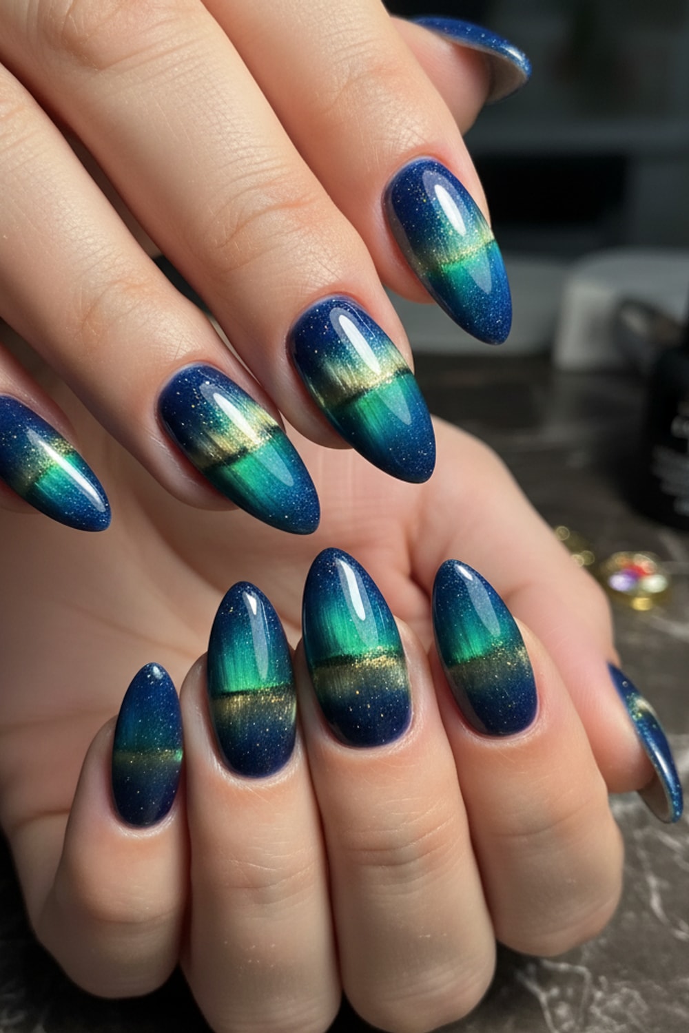 - 9D or 12D multi-chrome cat eye gel polish
