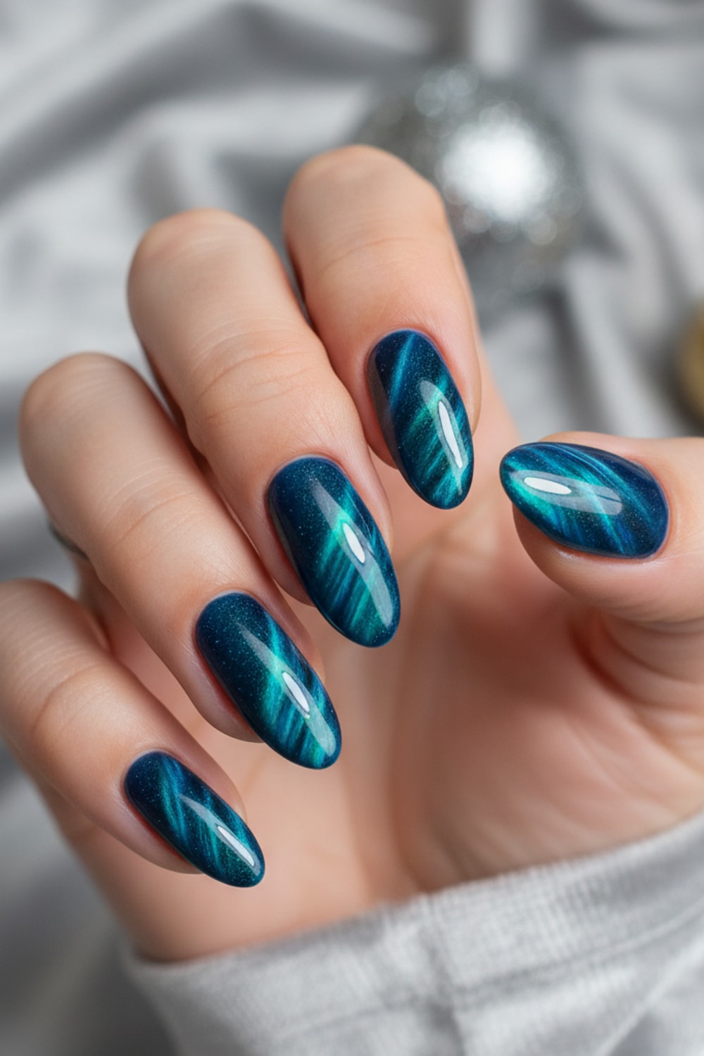 Photo-Real Salon Cat Eye Nails: Deep Shimmer & Precision