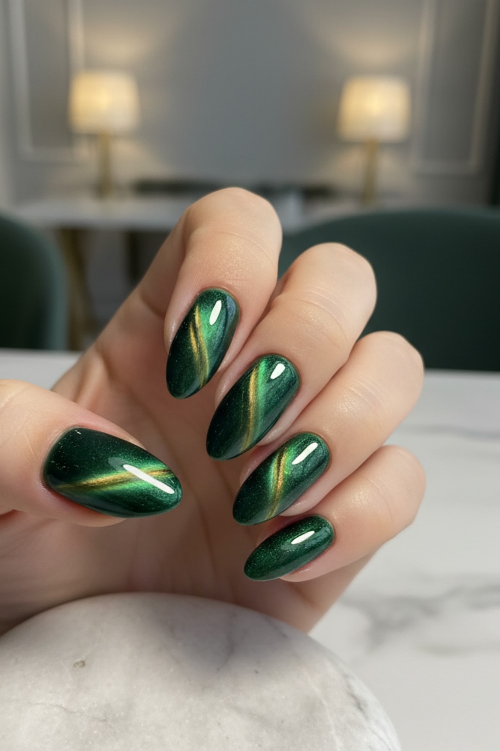 Luxe Photo-Real Salon Cat Eye Nails: Magnetic Shimmer Art