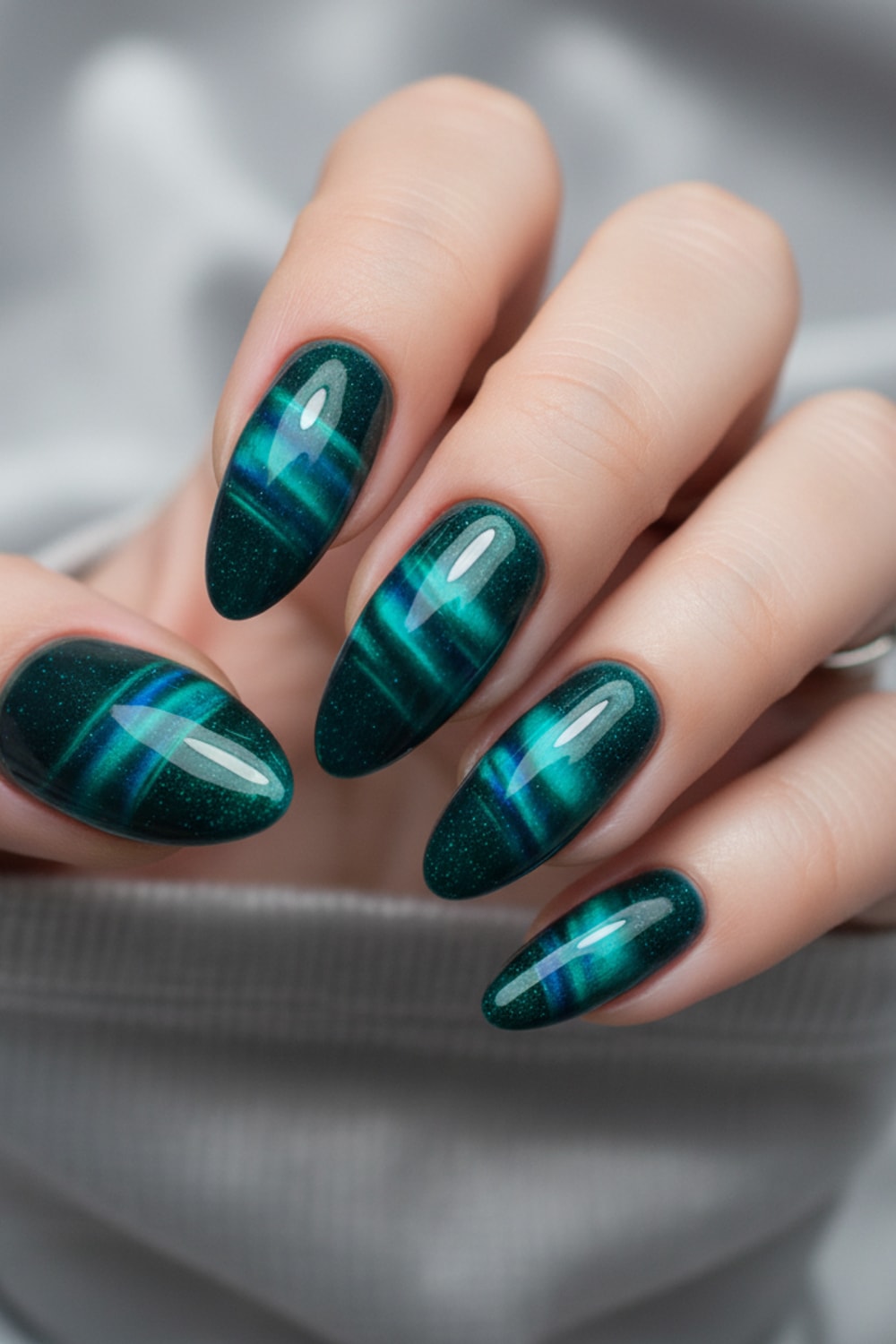 Photo-Real Sapphire Cat Eye Nails: Salon Depth & Shine