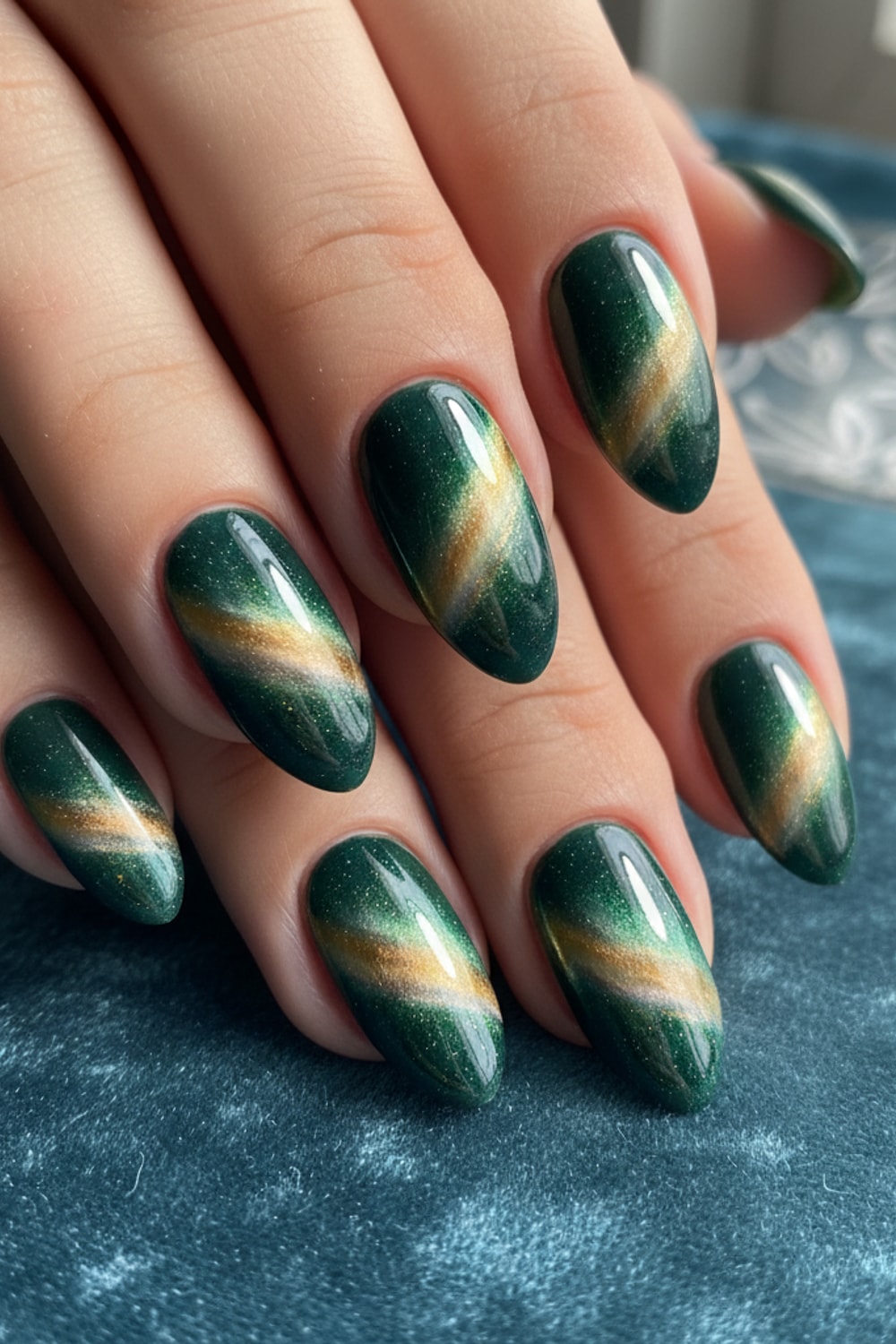 The 'Cat Eye' effect is not painted; it's created using magnetic particles suspended within a special gel polish that respond to a strong magnet just before curing, creating the distinct light reflection.