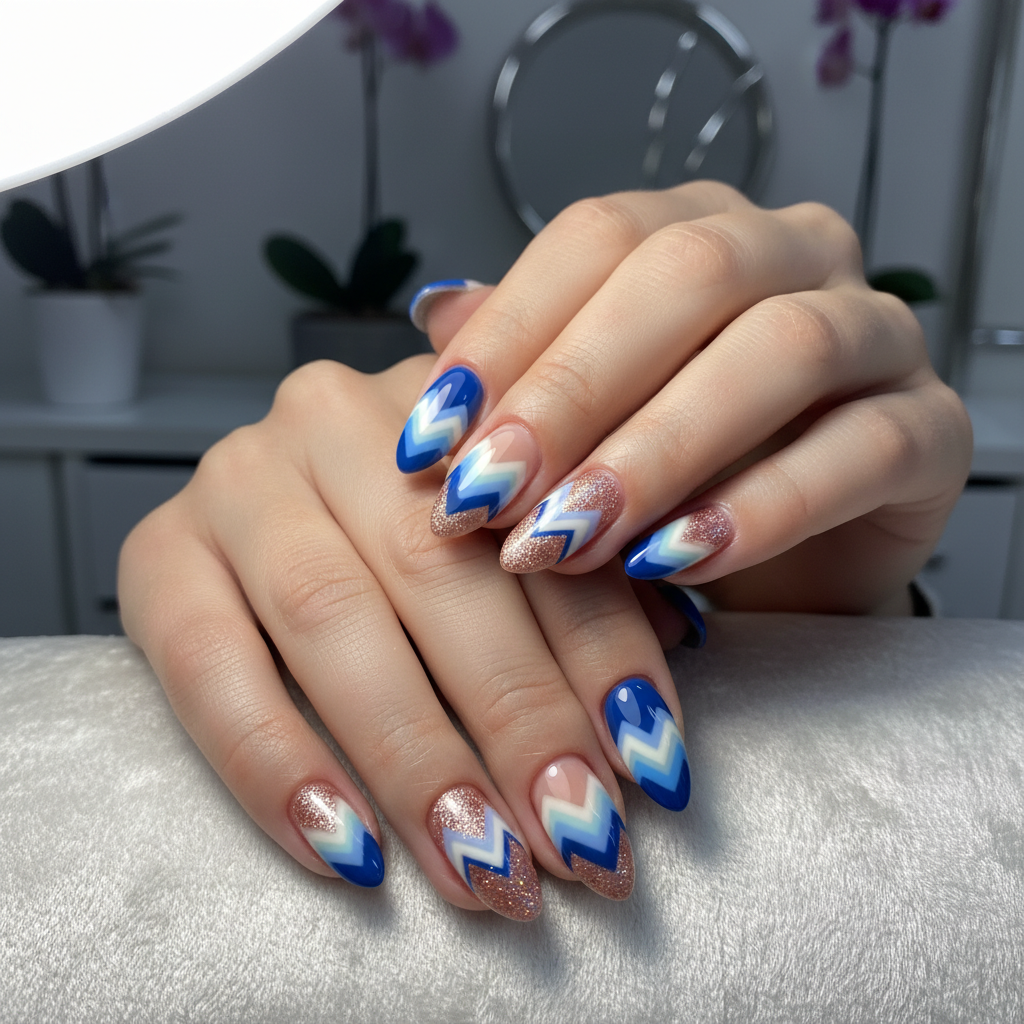 Chevron designs are making a comeback, offering a modern twist on classic nail art. Its sharp, geometric pattern is perfect for standing out.