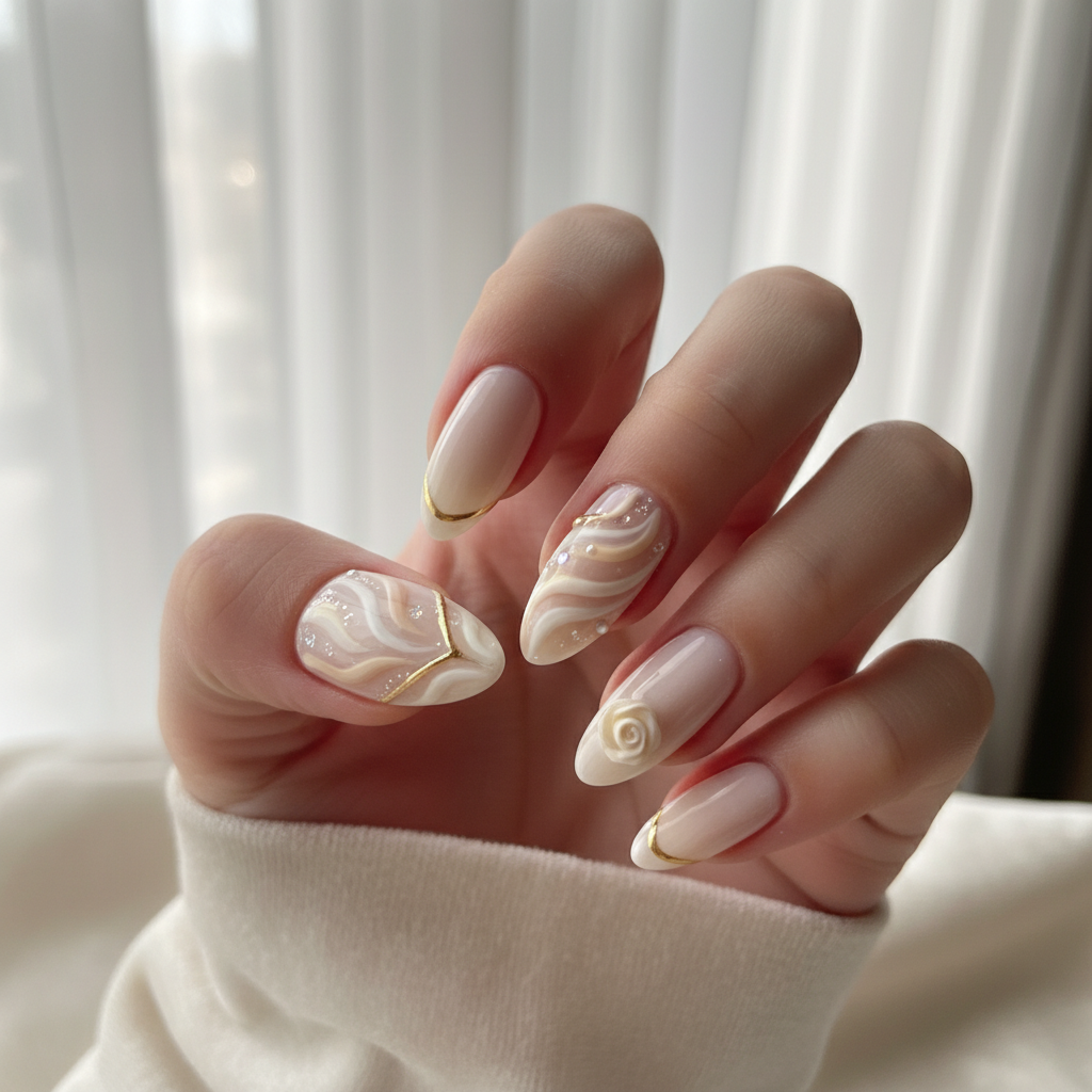Cream inspired nail art with clean, photo-real finish and professional salon quality
