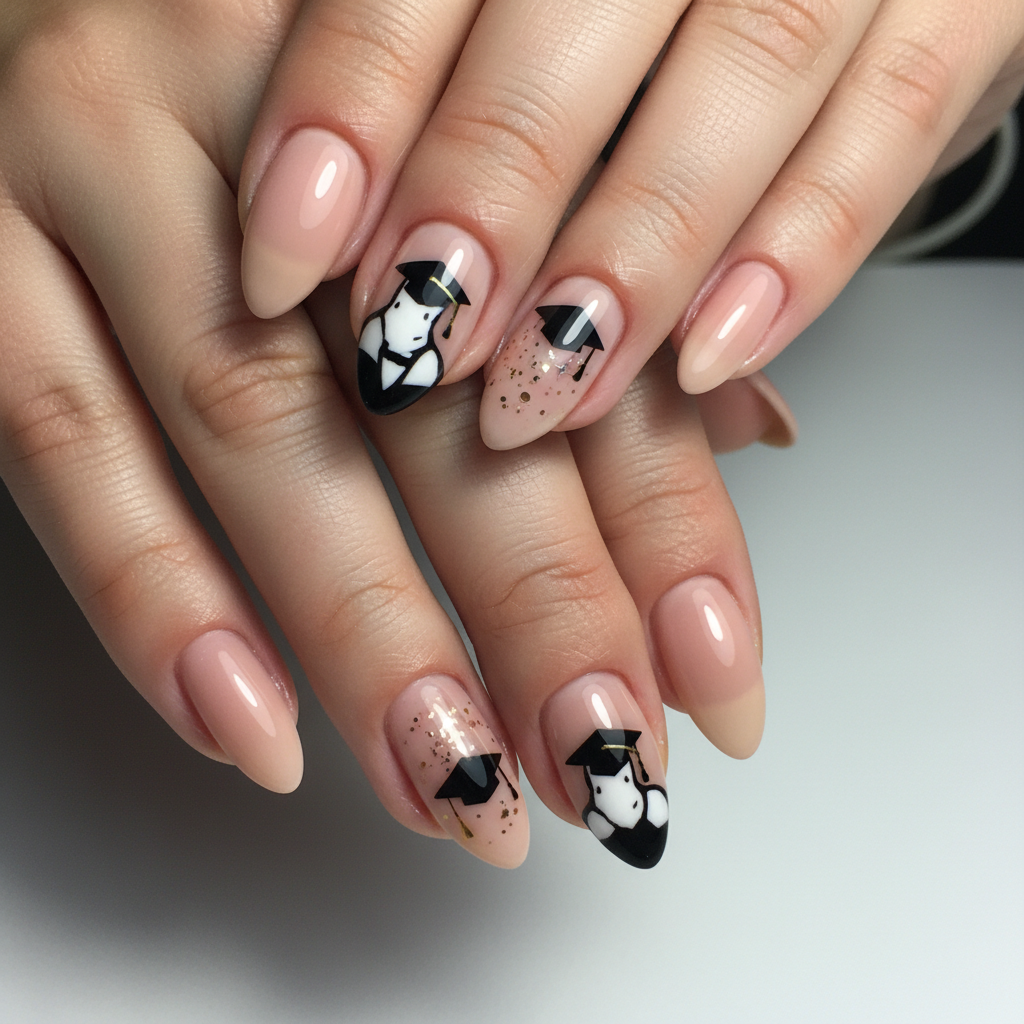 Inspired by the desire to celebrate academic achievements with sophisticated and artistic nail designs, showcasing the pride and joy of graduation day.