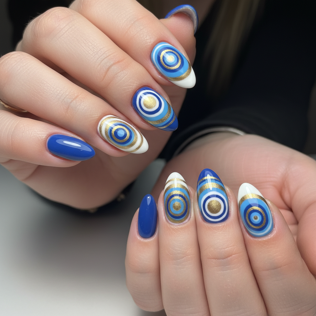 Round inspired nail art with clean, photo-real finish and professional salon quality