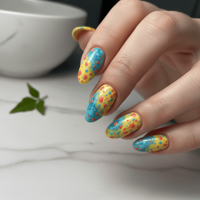 Sponge inspired nail art with stunning, photo-real finish and professional salon quality