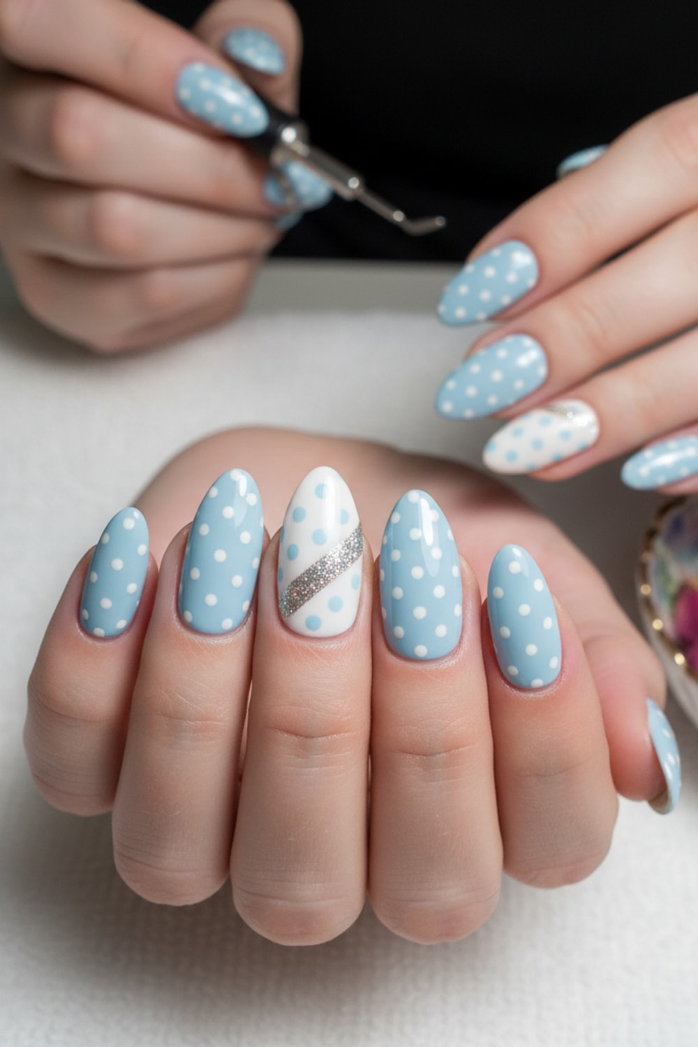Polka Dots inspired nail art with stunning, photo-real finish and professional salon quality