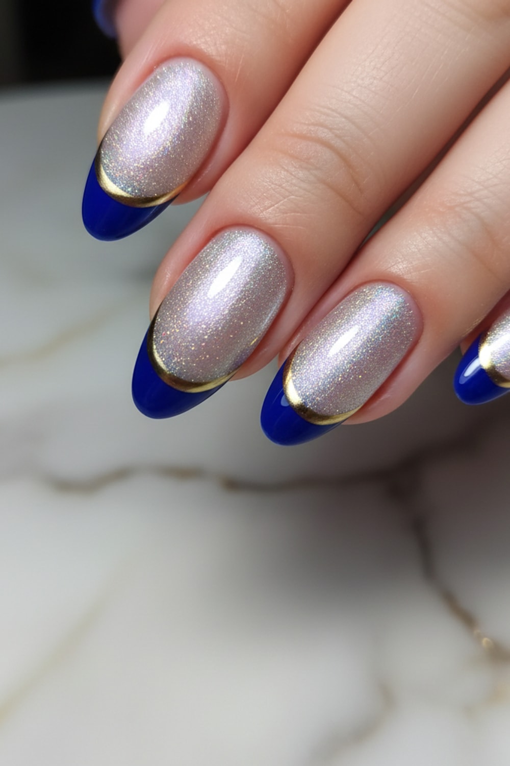 Almond, oval, and even a soft coffin shape beautifully complement the elegance of this 'inverted french' style, enhancing its sophisticated appeal.