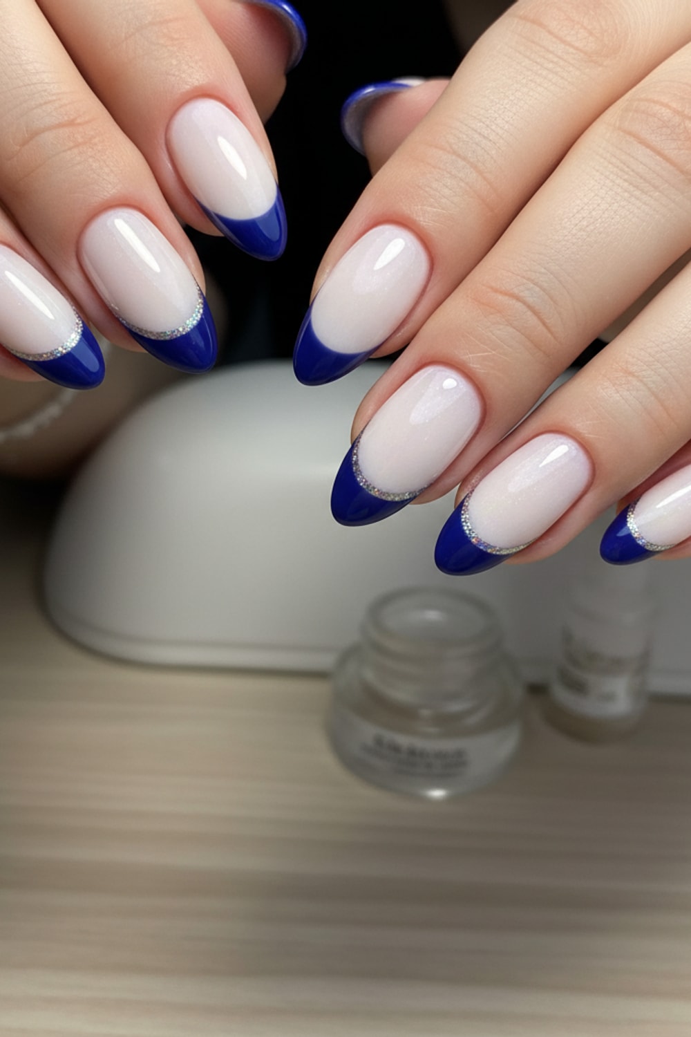 - Using an ultra-fine nail art brush and the deep accent color, meticulously draw a thin, crisp arc along the cuticle line, creating the distinctive reverse french effect. Cure.